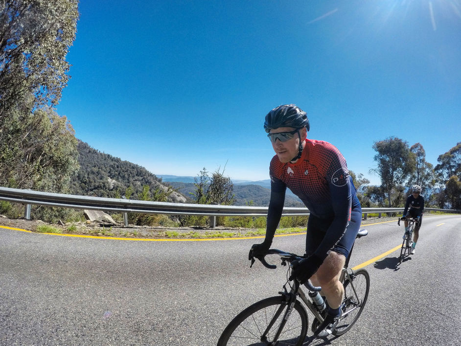 We leave Bright and climb over Tawonga Gap but the opposite way which is a little bit longer at 10km but still averages 7%. We descend down the otherside and there's a short flat section through Mt Beauty. From here it's all vertical for the next 30km. We regroup at the top, take in the view, grab some fuel and enjoy the descent back down to Mt Beauty where we stop for lunch. We then go back over Tawonga Gap for the Full Monty. A big day with 47km of climbing. If you're not feeling up to it there is a shorter option to drive to Mt Beauty and just do the climb and descent of Falls Creek.